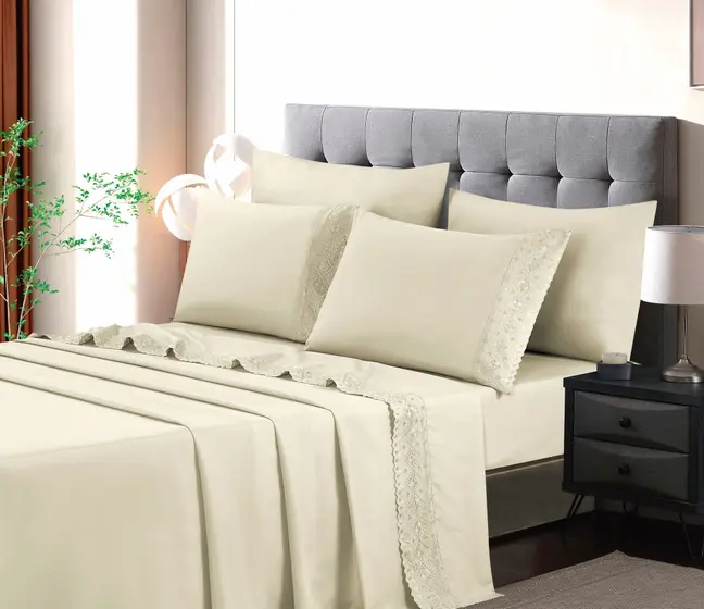 Com acabamento delicado em bordado inglês, o conjunto traz charme extra para a cama, tornando cada detalhe especial. O kit é composto por 1 lençol com elástico, que se ajusta perfeitamente ao colchão, 1 sobre lençol e 2 fronhas, formando um conjunto completo para noites de sono mais aconchegantes.